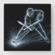 A striking neon sketch of a hockey player in motion against a dark background captures the energy and speed of the athlete with detailed lines and sparks flying as the skate hits the ice.