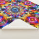 A dazzling kaleidoscope design radiates vibrant colours and intricate geometric patterns drawing the eye towards a captivating central point