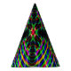 Special effects and neon swirls of diffracted light colours up the dark black background in a psychedelic array of pink, green, yellow, and blue.