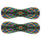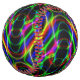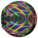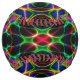 Special effects and neon swirls of diffracted light colours up the dark black background in a psychedelic array of pink, green, yellow, and blue.