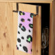 A kitchen towel with a neon leopard print design.