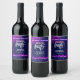 Purple and navy beach party birthday wine label with the neon frame, palm trees and string lights.