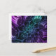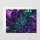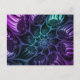 An original fractal of a flower shaped spiral of purple and blue neon lights.