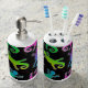 Neon Lizard and Leaf Pattern Soap Dispenser And Toothbrush Holder