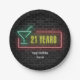 Neon marquee 21st birthday sign on brick paper plate