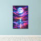 Neon Moonlit Ocean – Cosmic Night Seascape Art Canvas Print