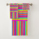 Pretty weaved squares in multicolored neon stripes cover this wonderfully fun towel set.