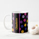 Neon pink, yellow and purple on black pickleball pattern, custom initial. Great as a gift. Coffee Mug with custom name on the side