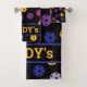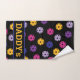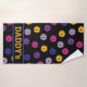 Neon pink, yellow and purple on black pickleball pattern, custom text Bath Towel Set. Perfect as a gift for pickleball player. Customisable text.