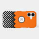 Cute trendy modern chic girly custom monogram case for your cell phone, ipad and more in a neon orange color which can be changed by selecting a different color. The bottom portion of this case is designed with a black and white chevron zigzag image that can be enlarged, reduced and moved around by clicking "customize it" and selecting the chevron image then use the directional tools to move it around. Change the monogram with a different letter or initials.