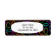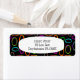 These return address labels have a geometric design of groups of three ovals in neon colours scattered about on a field of black.