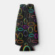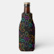 This bottle cooler has a geometric design of groups of three ovals in neon colours scattered about on a field of black.