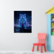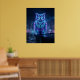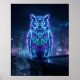 A commanding neon owl perches high above a futuristic city skyline, glowing with electric blue, violet, and cyan contours. Its luminous eyes and symmetrical form create a powerful centerpiece against distant skyscraper lights, rooftop shadows, and moody midnight haze. Clean futuristic lines and elegant nocturnal energy make this design both striking and sophisticated. Perfect for gaming rooms, offices, bedrooms, or collectors who love owls, urban night scenes, and sleek cyberpunk style.