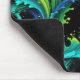 Swirling patterns of vivid green and blue resemble dynamic waves or splashes set against a deep black background