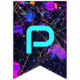 Neon Paint Splatter Happy Birthday Bunting Flags. Funky abstract paint splatter with Happy Birthday text in aqua. We invite you to visit our Zazzle store, Life on Memory Lane, for matching products and more. Please contact us if you require any assistance.