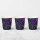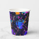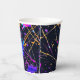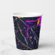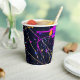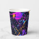 Neon Paint Splatter Party Paper Cups. Funky abstract paint splatter in dark blue, purple, neon orange, aqua, violet, blue.