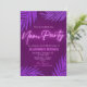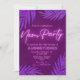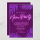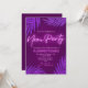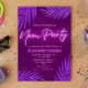 Minimalist invitation with Neon lights the title to give the invitation a tantalising look with dark violet on the background with matching glittered tropical leaves