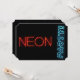 5” x 7” ticket style pearl shimmer invitation with an image of an orange and red neon light spelling “neon” and a blue neon light spelling “party” on black. The back is black with neon blue customisable text. Neon was big in the 80s and this invitation is a fun reminder. See matching envelope, favour box, medium gift bag and label. See the entire Tubular 80s Invitation collection in the INVITES | Invitations & Cards section.