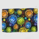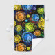 A fun artistic design featuring a pattern of pickleballs in neon shades of green, blue, yellow and orange, all on a contrasting black background. Makes a great gift for any pickleball enthusiast.