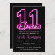 Neon Pink 11th Birthday Invitation