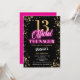 Neon Pink 13th Birthday Party Invitation