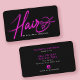 Neon Pink and Black Retro Script Hairstylist Business Card