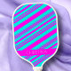Neon Pink and Blue Stripes Trendy Stylish Name Pickleball Paddle. (The colours of the stripes are slightly uneven, that is part of the design, not print error.)