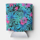 Neon Pink and Blue Tropical Plant Pattern Can Cooler