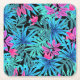 Neon Pink and Blue Tropical Plant Pattern Square Paper Coaster
