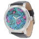 Neon Pink and Blue Tropical Plant Pattern Watch