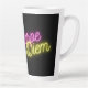 Modern, fun and inspirational tall latte mug features neon pink and yellow "carpe diem" word art, reminding one to "seize the day!"