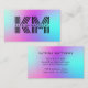 Make a memorable first impression with this modern and unique business card. The eye-catching holographic background and vibrant, iridescent colours blending soft pink, purple, and blue hues create an unforgettable design that helps you stand out from the crowd. A large, custom monogram and your name are prominently displayed on the front, instantly establishing your personal brand. This colourful and professional business card is designed to leave a lasting impact, showcasing your creativity and style. Easily personalise this template with all your contact information on the back, creating a one of a kind card that is as unique as you are.