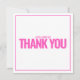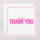 This striking thank you card features a bold, easy to read neon pink message framed by a modern, thin pink border on a crisp white background. The large "THANK YOU" text adds a cheerful, girly vibe, making this card perfect for sending fun and happy gratitude for any occasion. Ample space lets you add your own personal message for a touch of playful charm and stylish minimalism