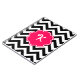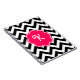A customisable neon pink monogram frame is on a background of a bold black and white chevron pattern.