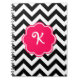 Neon Pink Custom Monogram with Chevron Pattern Notebook