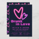 Neon Pink Hearts Drunk in Love Wedding Shower Invitation