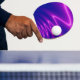 Beautiful hot pink wavy light running through a deep purple background. This looks like a hot pink bolt of lightening. A unique fractal design that has an air of surrealism.