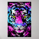 Neon Pink Tiger Head Portrait Poster | Tiger Poster Pink by Tigazprint