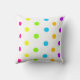 Bright neon dots on a white background. Neon Pink, Yellow, Green, Aqua, Orange, and Purple. Also available in a lumbar (rectangle) size. High quality design printed on fabric.