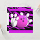 Neon Purple Zebra Stripe Bowling Party Invitation