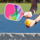 Neon Rainbow Abstract On Pink Pickleball Paddle