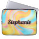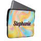 This laptop case features a modern neon rainbow swirl design. Personalise it with your name or initials.