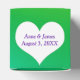 White heart with newlywed names on neon rainbow abstract background.