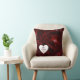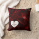 Various shade of red are featured in throw pillow. The design is digital photo of delicate violas. The dark crimson reds and light pink tones come together to give this pillow the look of neon. There is a white heart with deep red text that reads, "HAPPY VALENTINE'S DAY", in the lower left corner, of the pillow. The text can be personalised or you can remove the text and the heart.