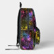 Kick off your back to school in style with this funky, super cool Neon Reptile backpack. This fun, stylish custom backpack features a very bright and colourful snakeskin design on a black background. A monogram initial text template is included - use it to personalise your bag or remove it, the option is yours. This backpack also has a black colour block strip at the top of the front pocket, complimenting the monogram. Feel free to change these to suit your style!