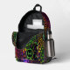 Kick off your back to school in style with this funky, super cool Neon Reptile backpack. This fun, stylish custom backpack features a very bright and colourful snakeskin design on a black background. A monogram initial text template is included - use it to personalise your bag or remove it, the option is yours. This backpack also has a black colour block strip at the top of the front pocket, complimenting the monogram. Feel free to change these to suit your style!