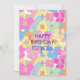 Neon Retro Floral Pink Birthday Holiday Card