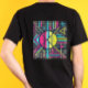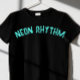 vintage-style t-shirt design featuring a neon rhythm with layered neon rays ,clean lines , and a vintage, along with the phrase "NEON RHYTHM.