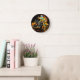 Wall Clock, 25.4 cm Round Black Wooden Frame