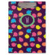 Stylised roses in bright neon pink, blue, yellow, and coral with neon green leaves are spangled across a deep purple background to create a fun floral pattern. Customise the monogram on this clipboard with your initial to make it uniquely your own.